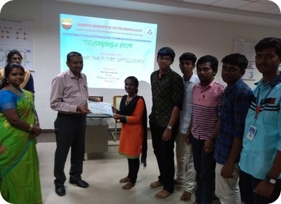 Department of ECE organized a one day workshop on Sensors for Future Intelligence in association with IETE during fifth State level Technical Symposium, Techyuga19 on 31.08.2019. Mr.K.Sankar, Director, M/s. Mathiimigal Tech (P) Ltd., Bangalore handled the session. Around 80 students from various engineering colleges participated in this workshop.