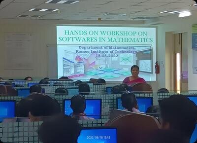 The Department of Mathematics, Ramco Institute Technology, conducted a Hands-on Workshop on Software in Mathematics for the students of Rajapalayam Rajus College on August 18th, 2022. About 120 students actively participated in the event. Faculty members of the Mathematics department gave the training to the students.