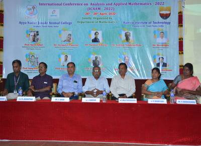 Department of Mathematics of Ramco Institute of Technology, Rajapalayam and Ayya Nadar Janaki Ammal College (Autonomous), Sivakasi organized the International Conference on Analysis and Applied Mathematics 2022 (ICAAM-2022) during 26-28, April 2022. Received more than 200 research papers from various states and 166 papers were selected for presentation. The conference was conducted online and offline mode.