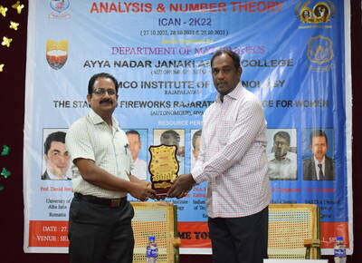 Department of Mathematics, Ramco Institute of Technology, Rajapalayam, Ayya Nadar Janaki Ammal College (Autonomous), Sivakasi and The Standard Fireworks Rajaratnam College for Women, Sivakasi organize the Three - Day International Conference on Analysis and Number Theory (ICAN-2K22) during 27-29, October 2022. Received 70 research papers from various states and 300 students and faculty members were participated in the conference. The conference was conducted online and offline mode.