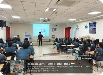 The Department of Information Technology, in association with RIT-Institution of Engineers (India), organized an inaugural event followed by a guest lecture on From Theory to Practice: Real-Time Applications of DSA on 04.10.2025. The resource person for the session was Mr. Rohinth R, Software Developer Engineer at Zoho, Chennai. The event aimed to bridge the gap between theoretical learning and practical applications by providing insights into the real-time use of Data Structures and Algorithms (DSA) in the software industry. The session helped students understand the importance of DSA in problem-solving, coding efficiency, and software development. Mr. Rohinth shared his industry experiences, explaining how DSA concepts are used in designing optimized solutions. The lecture was interactive and informative, inspiring students to strengthen their programming and analytical skills.The event was coordinated by Mrs. G. Mareeswari, AP/IT, and Mrs. M. Rethina Kumari, AP/IT, along with student coordinators Mr. Deena Thayalan P (IV IT), Ms. Poongothai S (III IT), Mr. Vimal S (III IT), and Ms. Varuna Shree A (II IT) under the guidance of Dr. V. Anusuya, Associate Professor & Head/IT. The students shared positive feedback, appreciating the insightful session and the practical knowledge gained from the resource person.