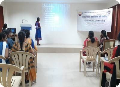 Computer Society of India (CSI) is the first and largest body of Computer Professionals in India. It was started on 6 March 1965 by a few computer professionals and has now grown to be the national body representing computer professionals. Our Institute has joined as an Institutional Member of the Computer Society of India in the year 2014. We also have student chapters comprising of more than 75 students in this forum of computer professionals. Our Institute actively contributing to the growth of Computer professionals by organizing various events like Coding Contests, Workshops, Seminars, and Technical Talks. Knowledge Dissemination meeting is happening every fortnight to discuss the contributions in CSI Communications.